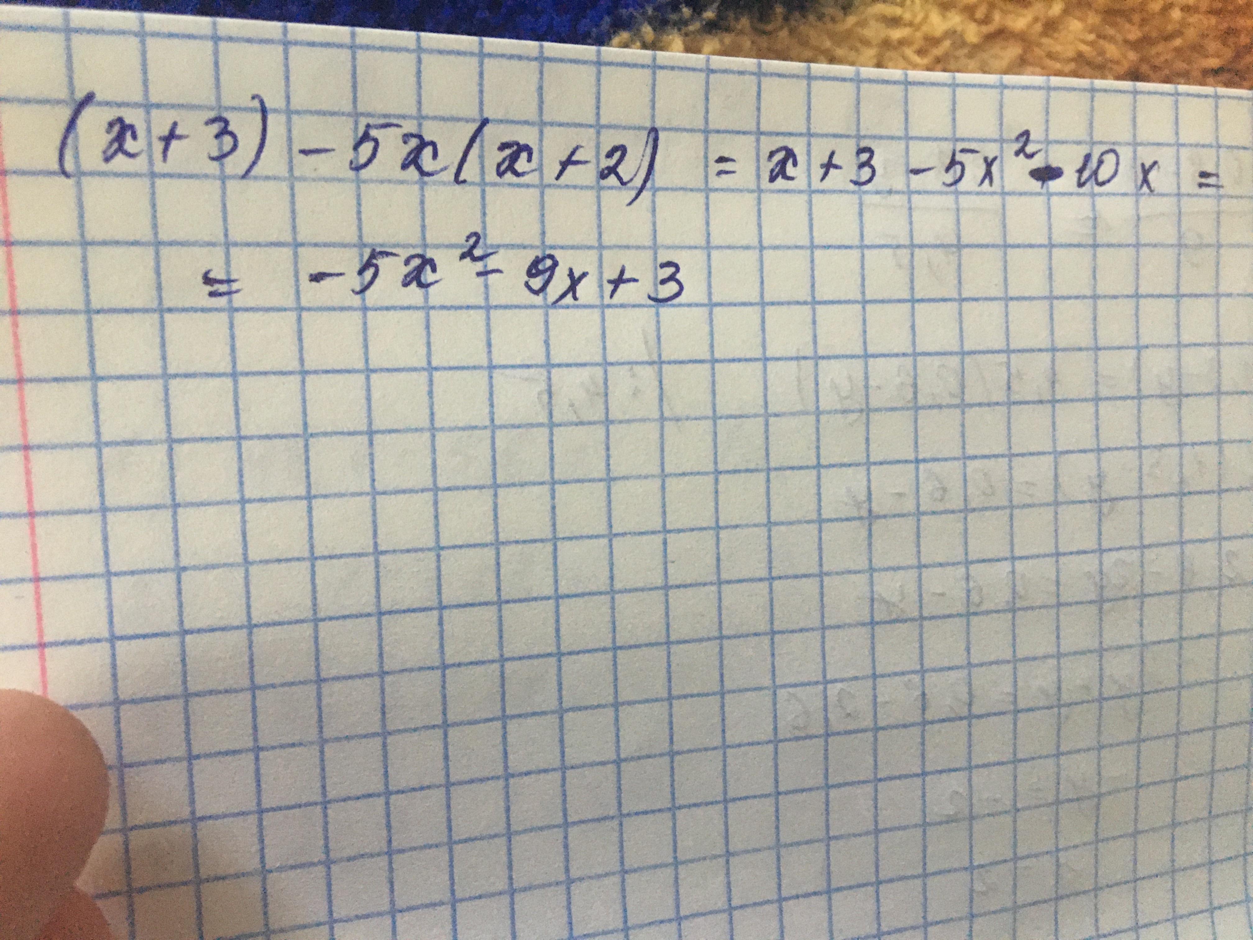 Помогите плиз упростить выражения (x+ 3) -5x *(x +2)