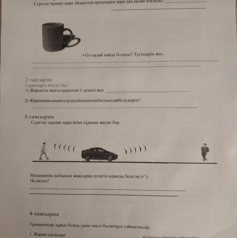 Көлеңке.Ыдыстың алдына Жарық түсіп тұр.Дене жарықты шағылдырып тұр.