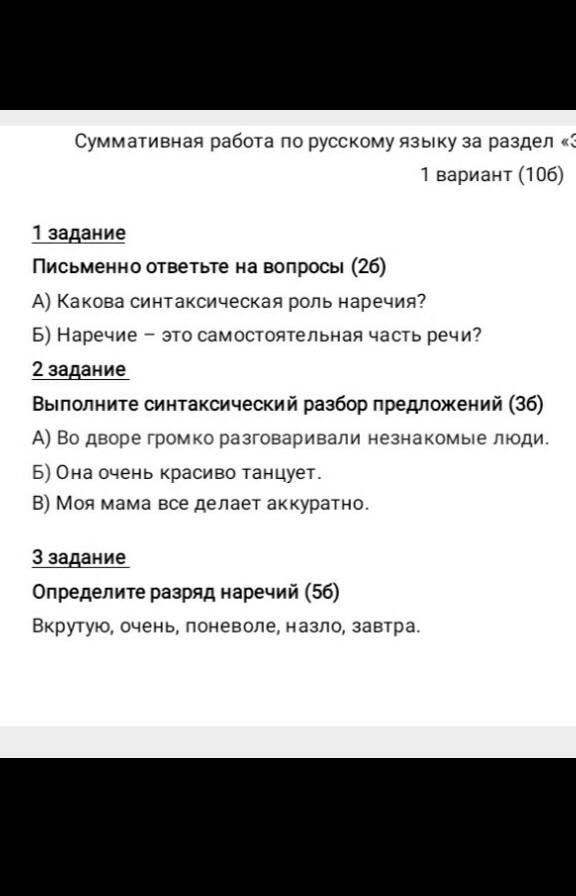 синтаксическая роль наречия – обстоятельство, однако в некоторых случаях оно может употребляться в качестве несогласованного определения. Наречие — это самостоятельная часть речи, обозначающая признак действия, признака, состояния, редко — предмета.