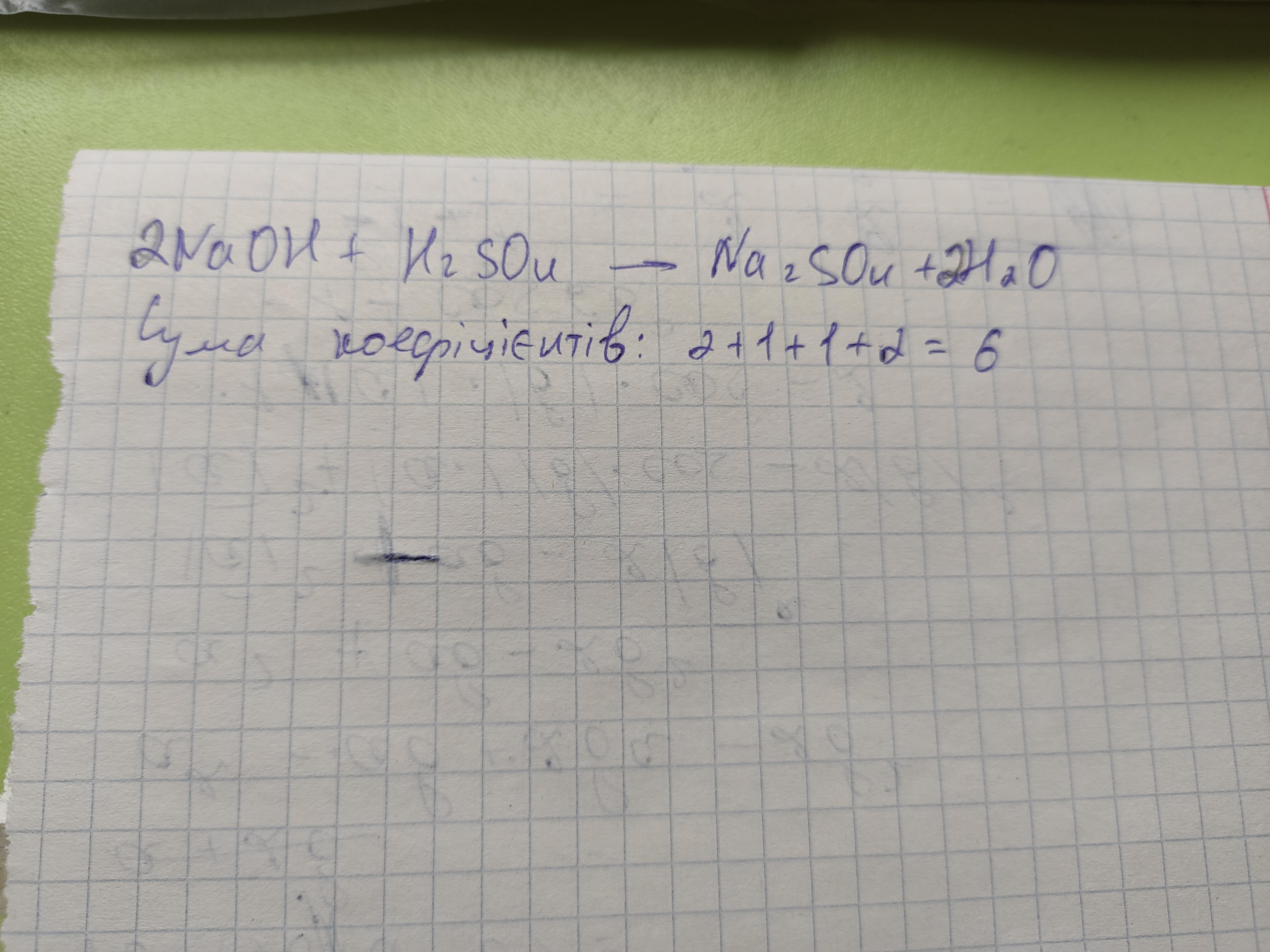 Складіть рівняння реакції між натрій гідроксидом та сульфатною кислотою. Укажіть суму всіх коефіціентів