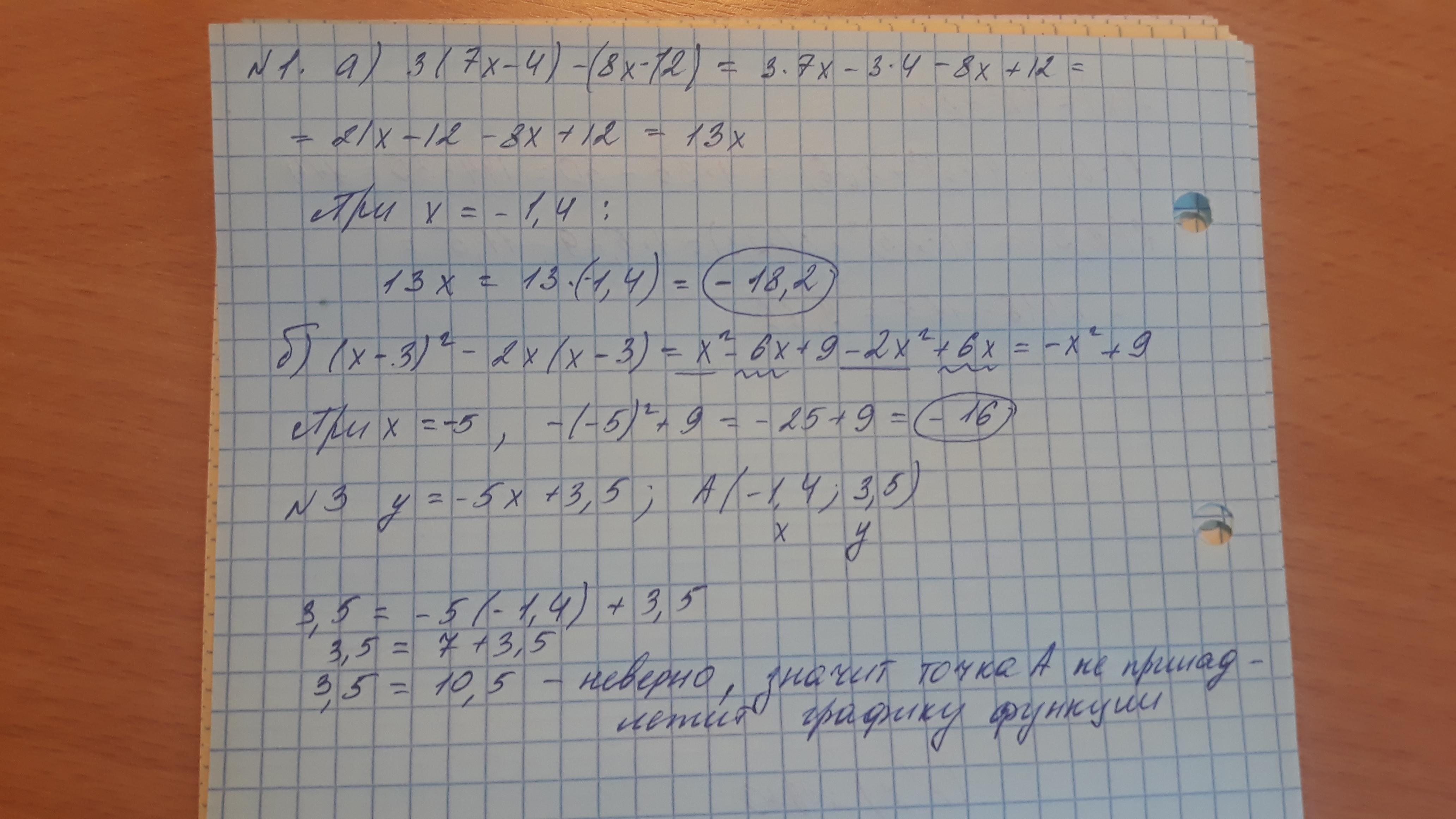 а) 3(7х – 4) – (8х – 12), если х=-1,4