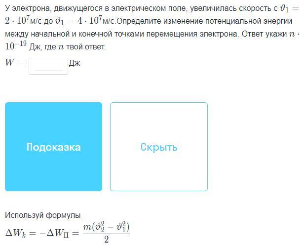 W=9,1*10^-31 кг((4*10^7)^2-(2*10^7)^2)/2=54,6*10^-17=5460*10^-19 Дж