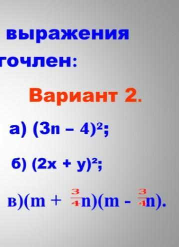 в) (m+3/4n)×(m-3/4n)