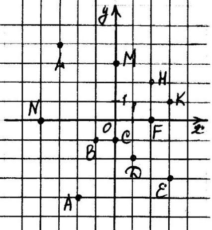 1. Выписать точки и их координаты , которые лежат: