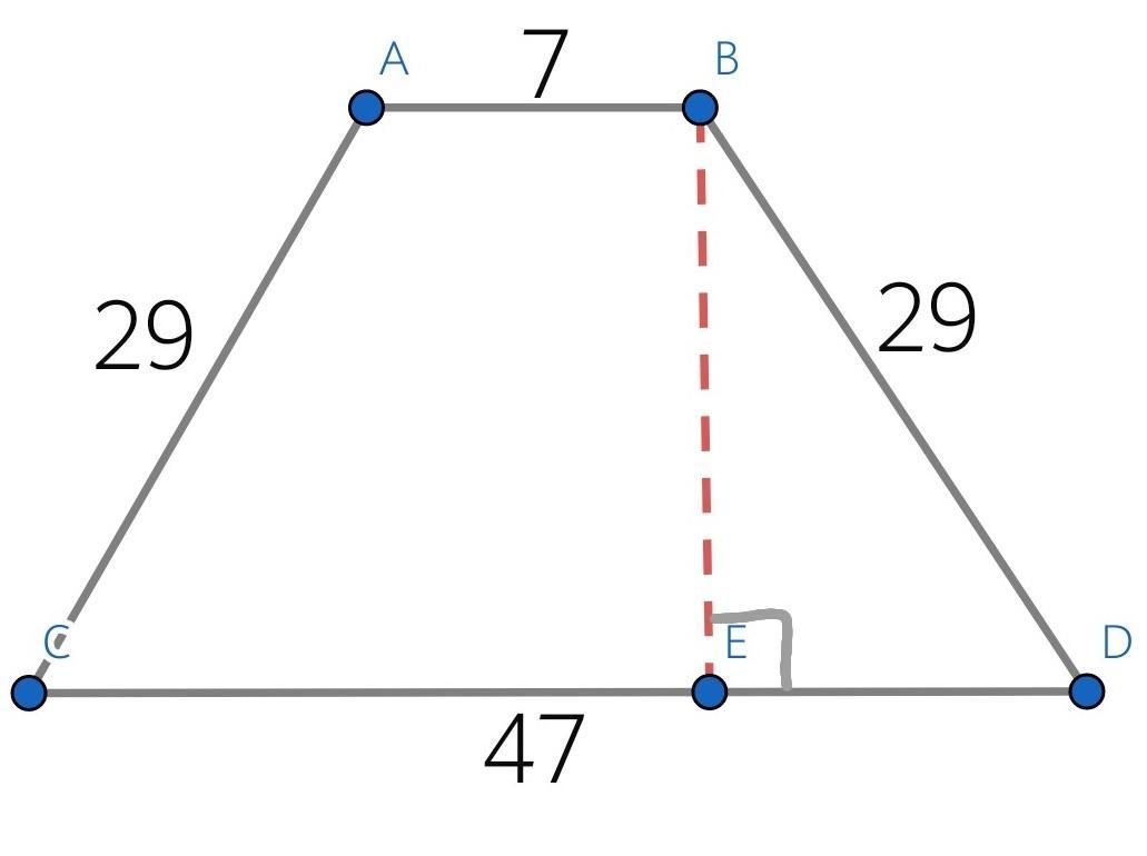 если проведем ещё одну высоту то получится прямоугольник шириной 7см, 47-7=40,49÷2=20