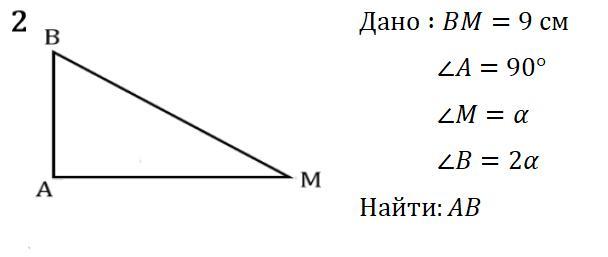 Тогда 2а+а = 90, отсюда М = а = 30 градусов, В=2а = 60 градусов.