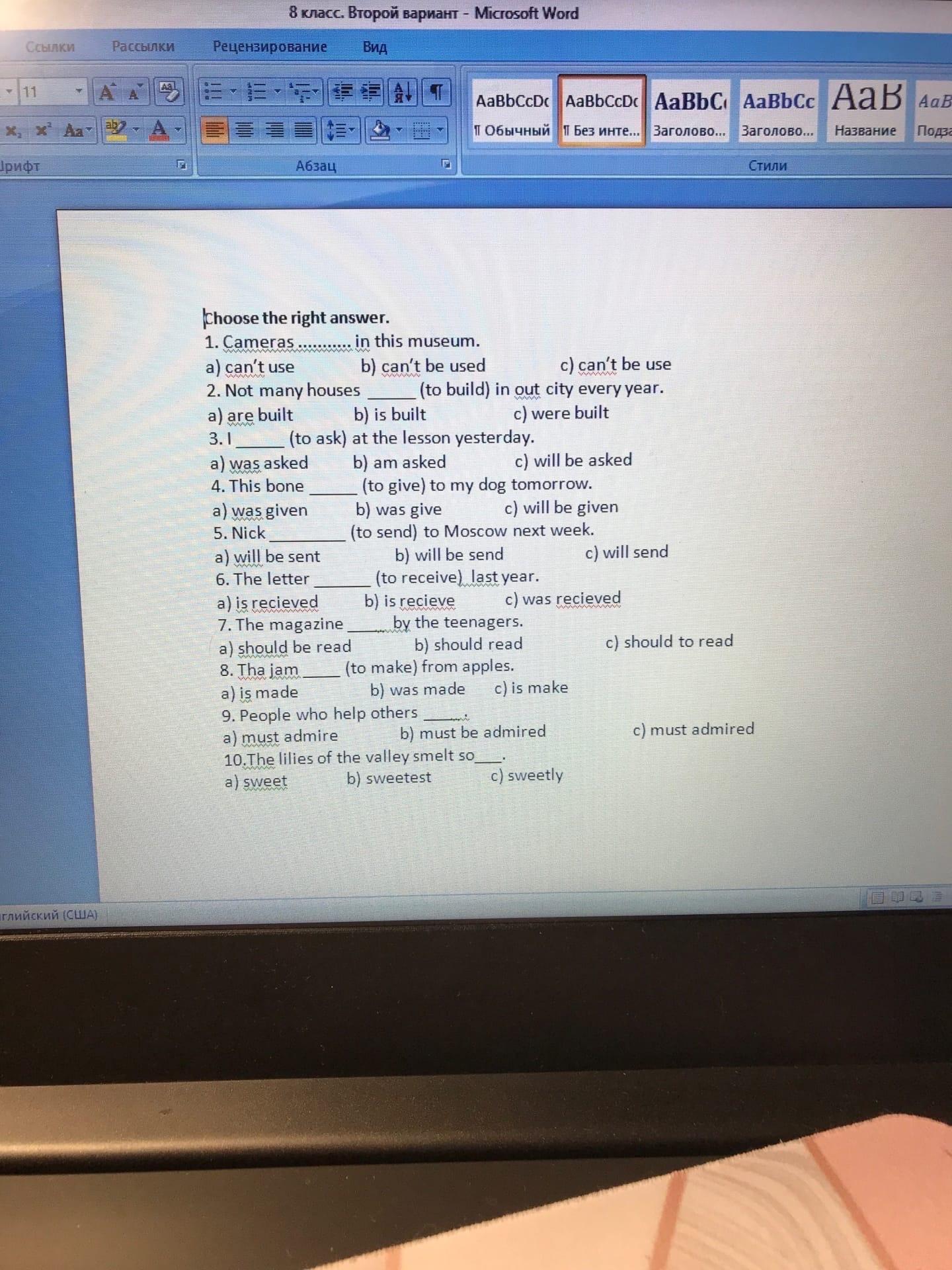 6. The letter (to receive) last year. c) was recieved
