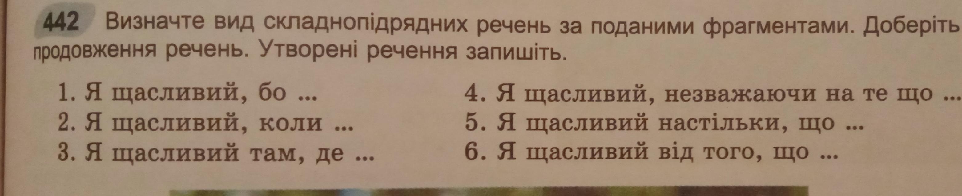 Визначте вид складнопідрядних речень за поданими фрагментами.
