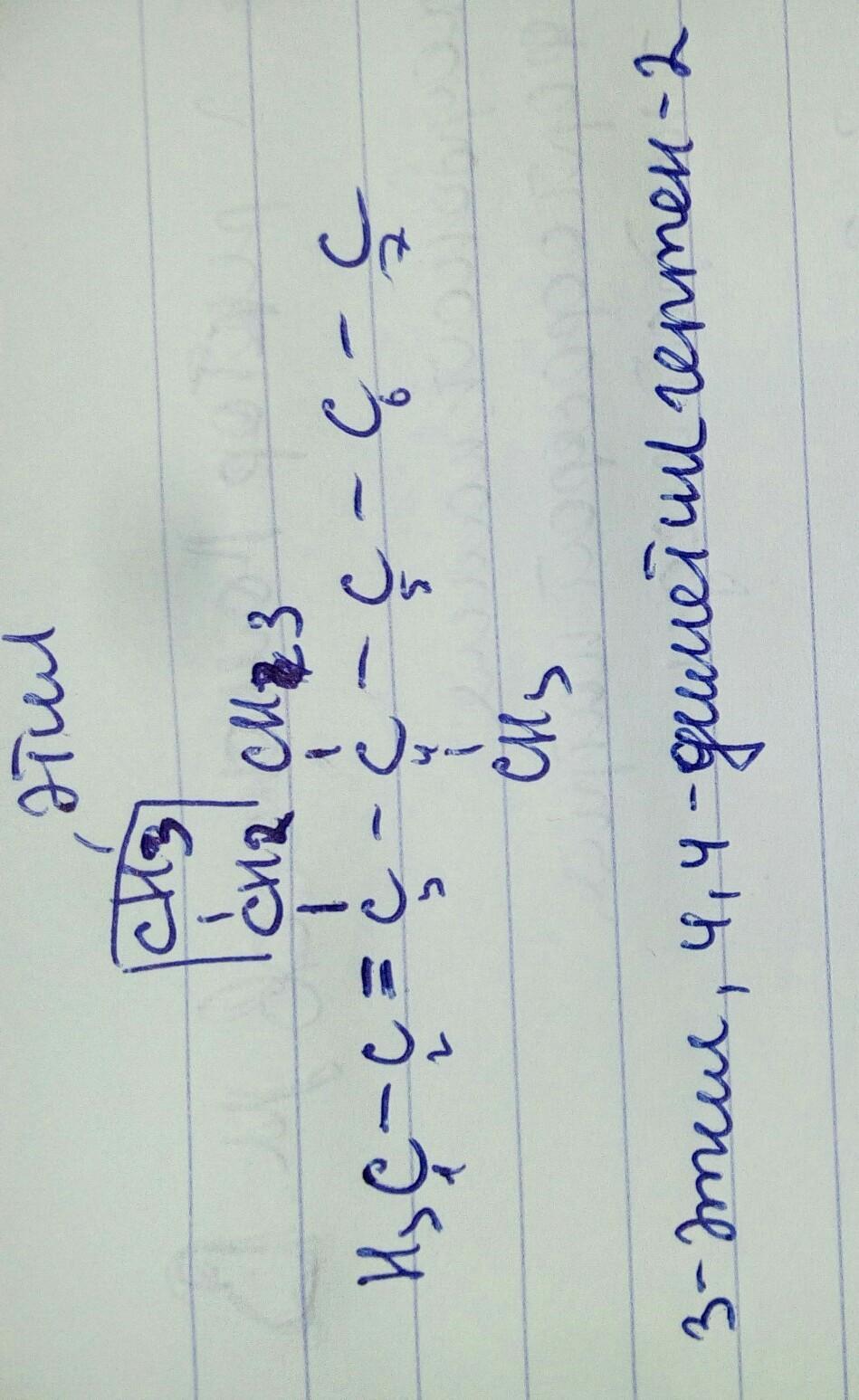 составить формулу углеводорода с названием 3-етил-4-4-диметилгепт-2-ен