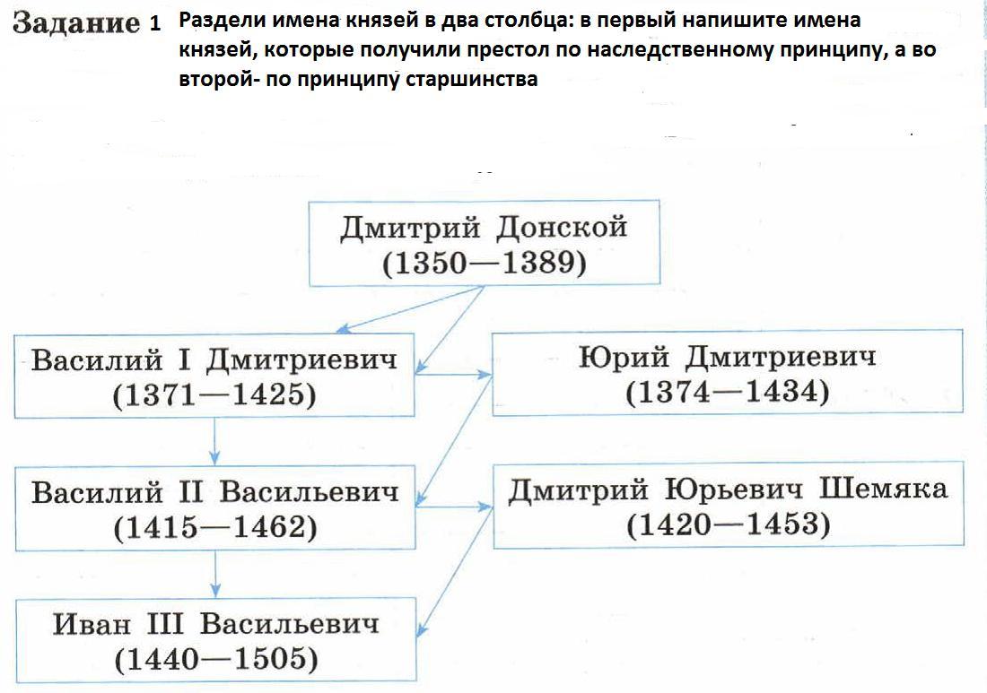 князей, которые получили престол по наследственному принципу, а во второй- по принципу старшинства
