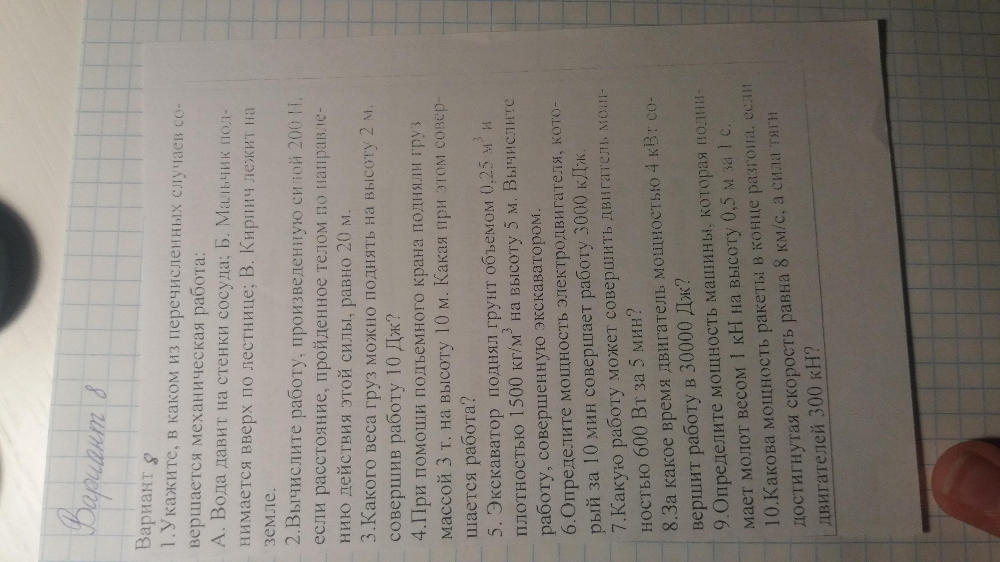 №8. За какое время двигатель мощностью 4 кВт совершит работу в 30 000 Дж?