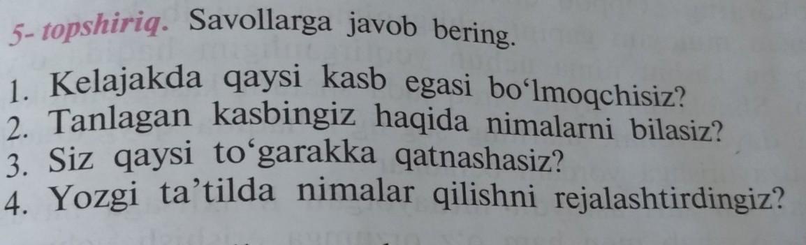 Ответ: 1. Мен келажакда укитувчи булмокчиман.