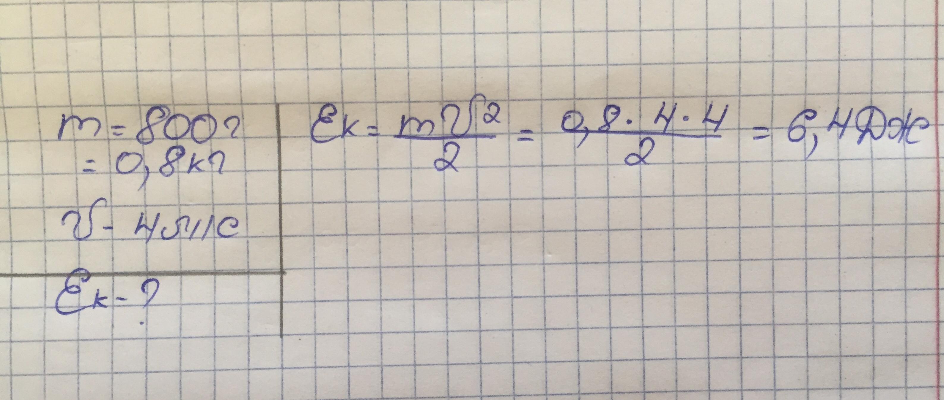 чему равна кинетическая энергия тела массой 800 гр движущегося со скоростью 4м/с. Задача