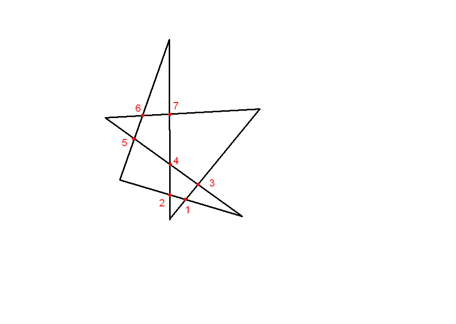 Помогите пожалуйсто! Начертить замкнутую ломаную , у каторой 6 звеньев и которая пересикает себя в 7-и точках