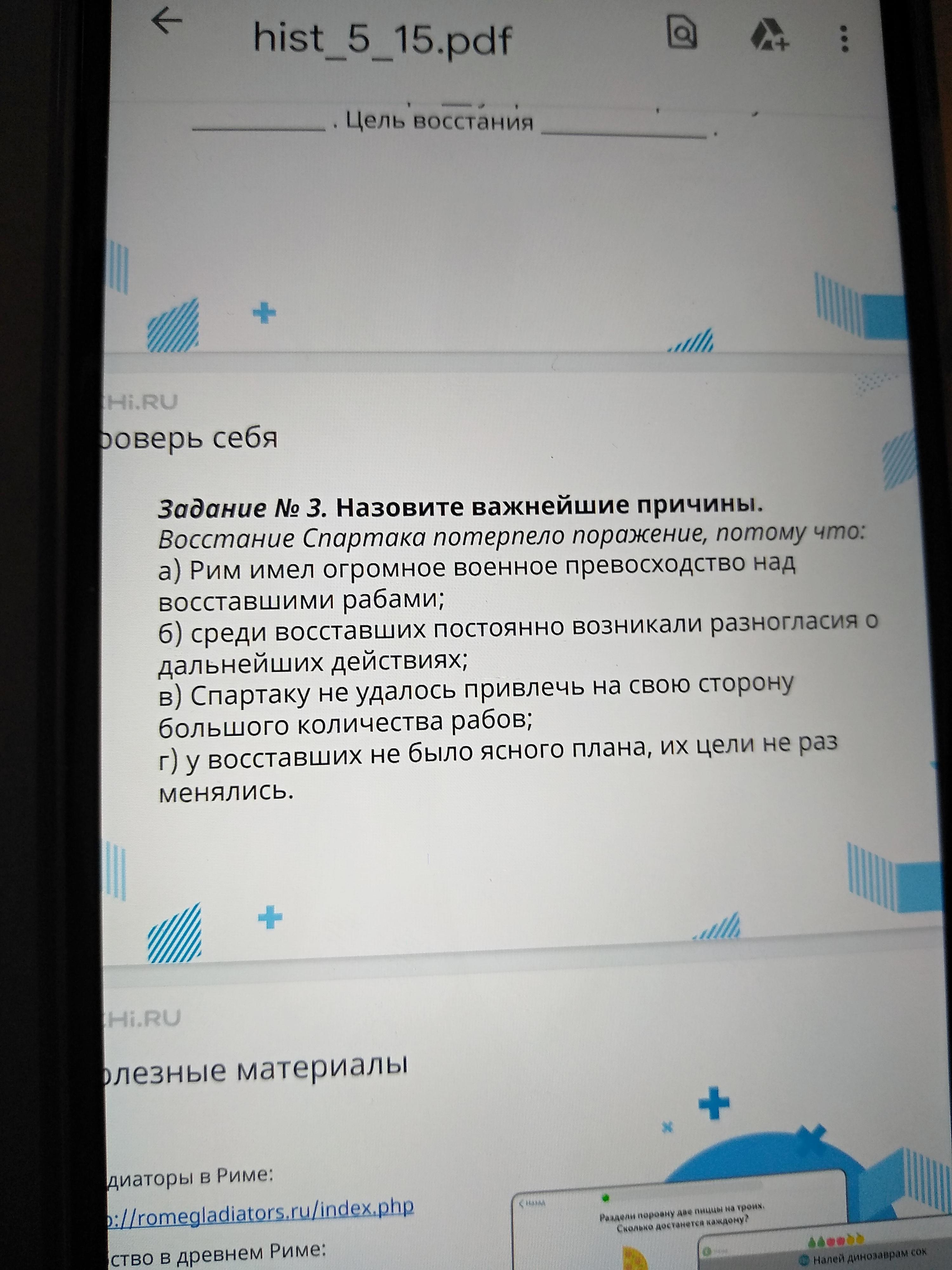 Ответ:Рим имел огромное военное превосходство над восставшими рабами