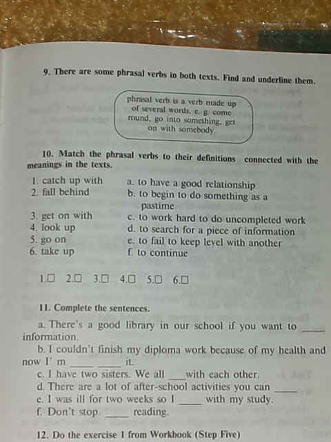 10 1 c 2 e 3 a 4 d 5 f 6 b 11 a-4 b-1 c-3 d-6 e-2 f-5