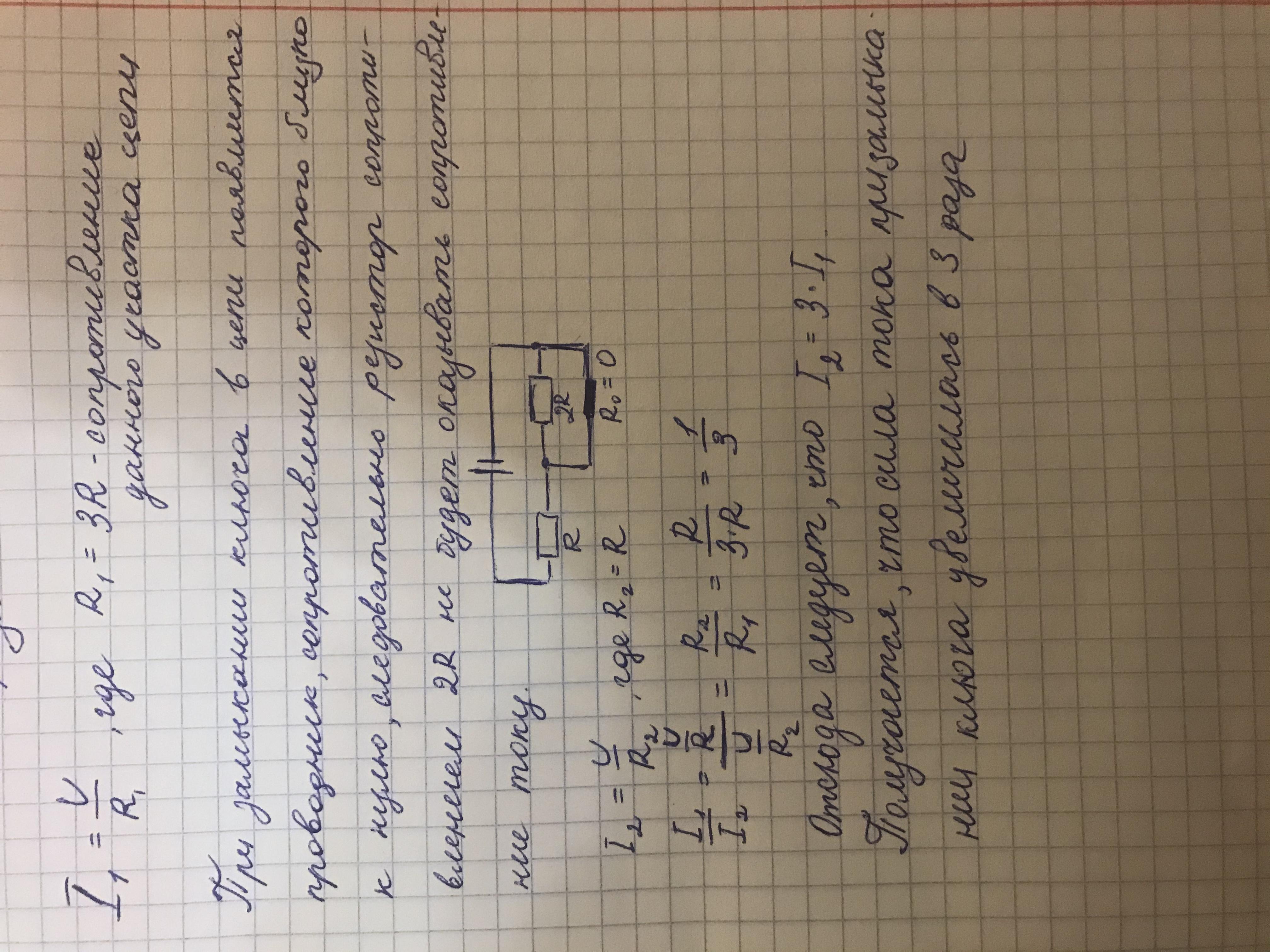 Два резистора сопротивлением R и 2R соединены так, как показано на рисунке. Как изменится сила тока в цепи, если замкнуть ключ К? Сопротивлением источника тока и проводов пренебречь.
