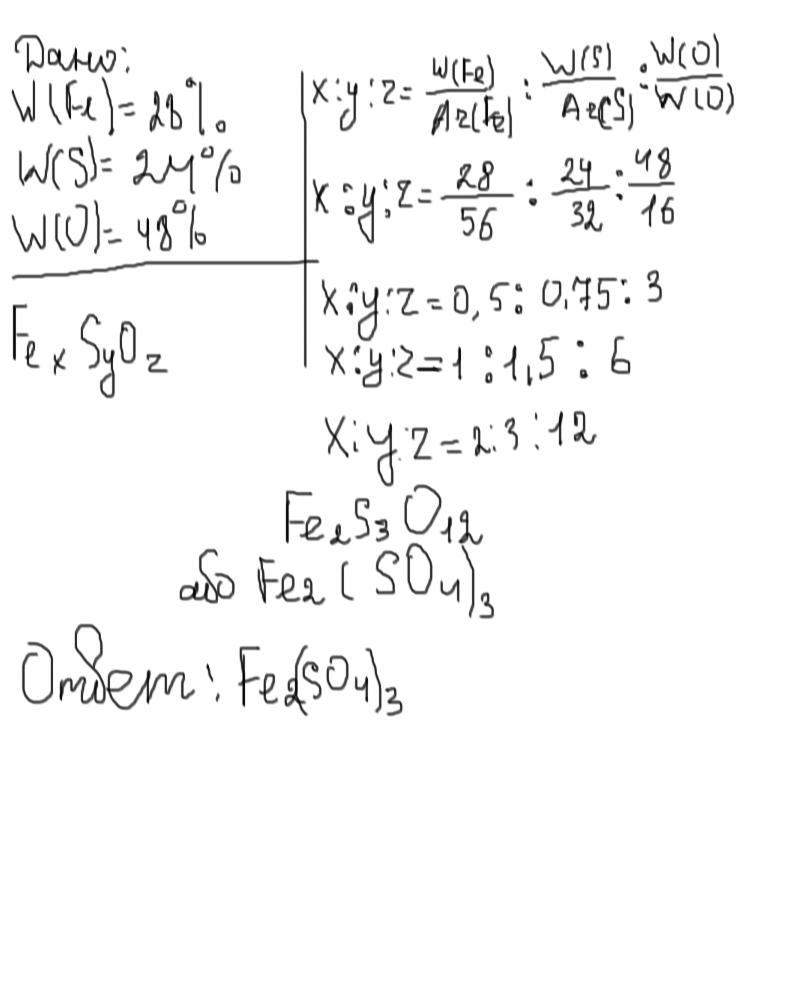 w(Fe) = 28%, w(S) = 24%, w(O) = 48%