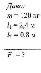 Два человека массами 60кг поднимают автомобиль массой 1200кг с помощью рычага. Короткое плечо составляет 50см. Какой минимальной длины должно быть длинное плечо плечо этого рычага?