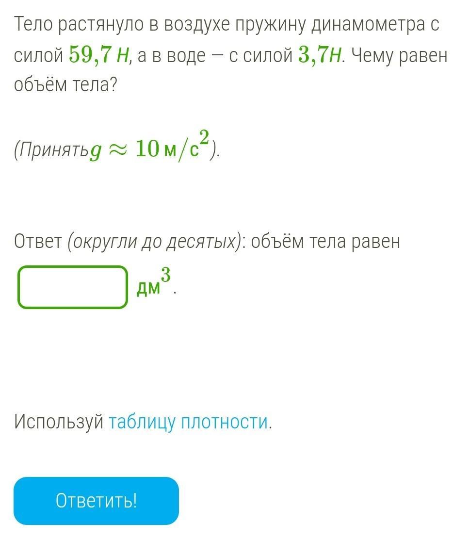 Объём тела равен: