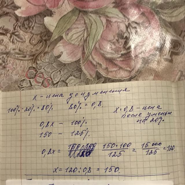 Цену за крабов сначала понизили на 20%, потом повысили на 25%.Сколько изначально стоили крабы если после повышения цены они стоили 150 рублей