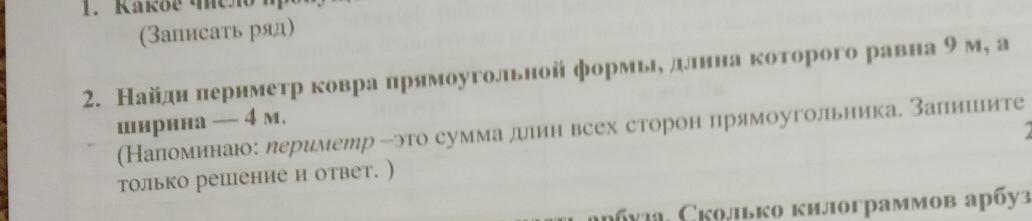 Ответ: площадь ковра прямоугольной формы равна 36 м2, а периметр равен 26 м.