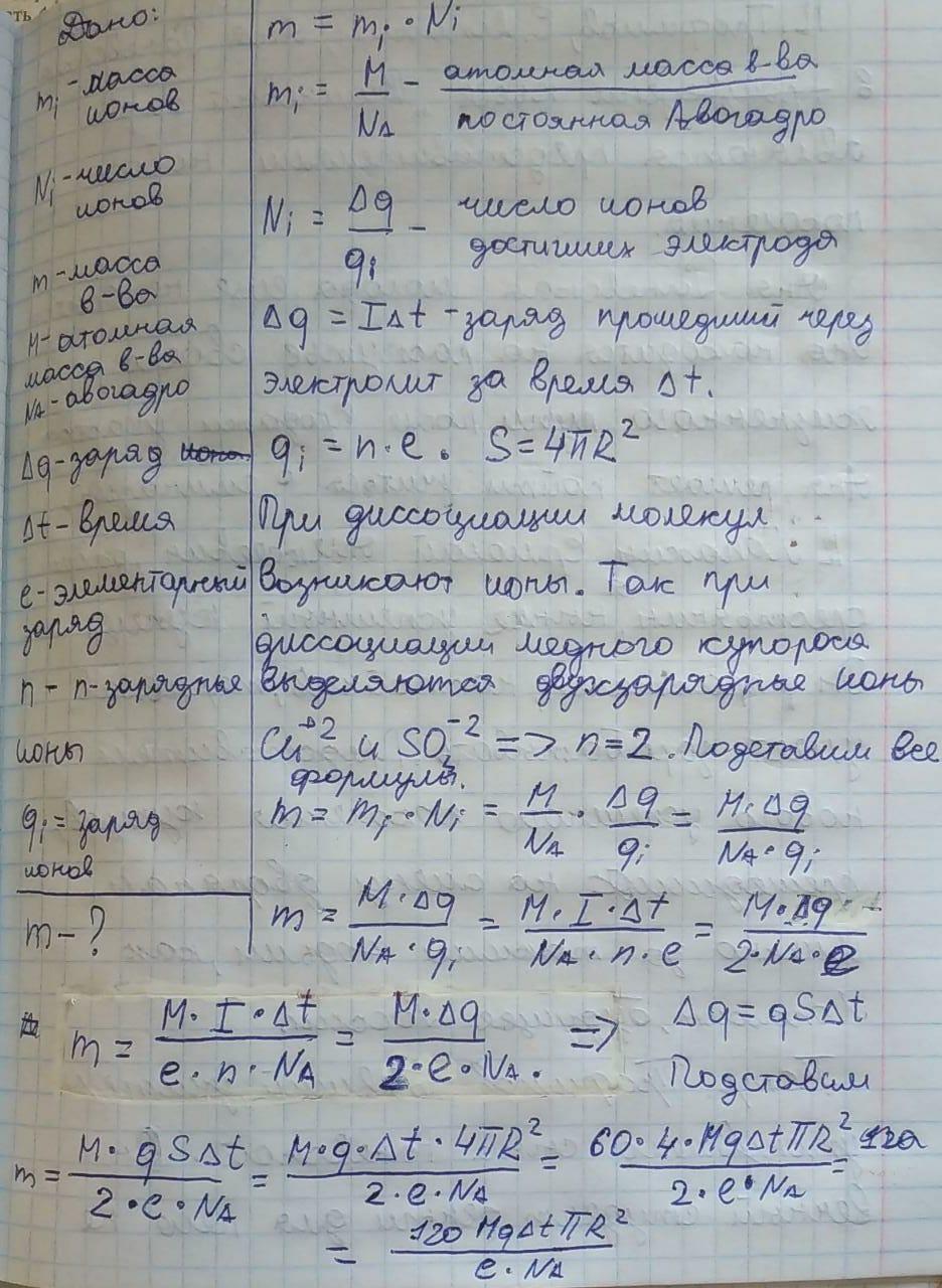 поверхности сферы за 1с, равен q Кл. Молярная масса меди М.