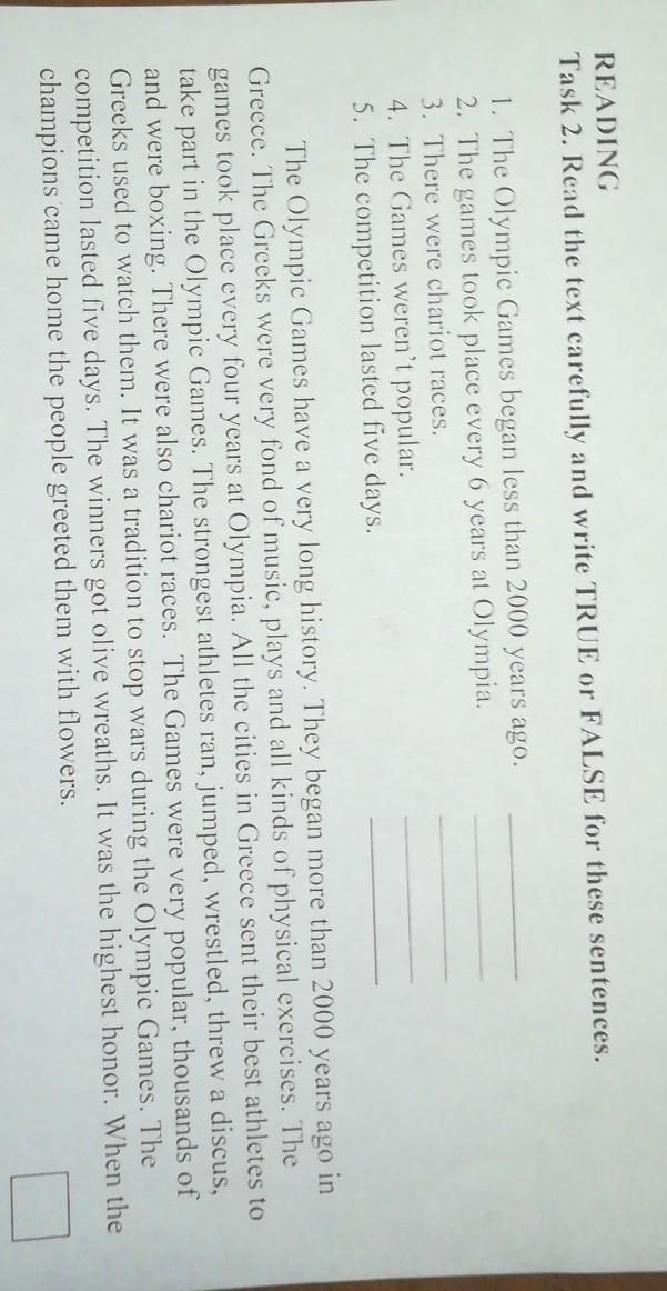 Task 2. Read the text carefully and write TRUE or FALSE for these sentences.
