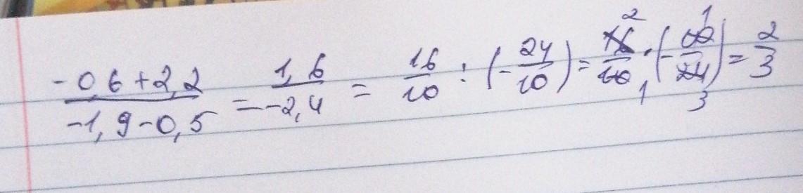 найдите значения выражения -0,6+2,2/-1,9-0,5