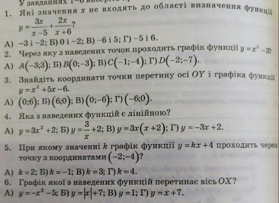 Тесты по алгебре на тему: "Функции"