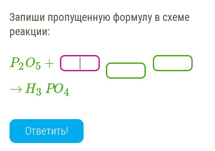 Химики!!! Помогите, пожалуйста Запиши пропущенную формулу в схеме реакции: P2O5+ ....