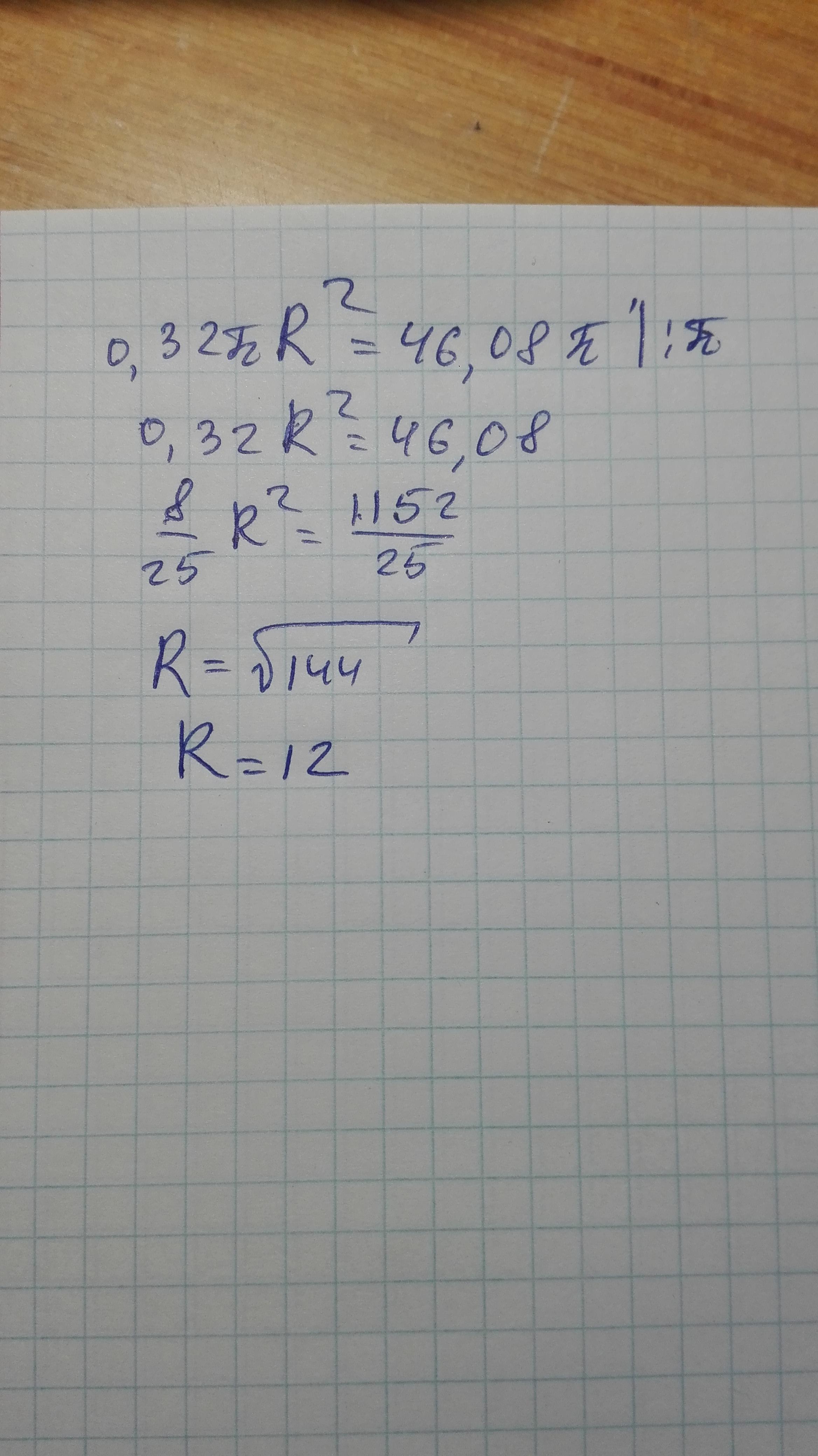 30 балів. Матем. 6 клас. Знайдіть радіус круга, якщо 32% його площі дорівнює 46,08*п кв.см (п наближено дорівнює 3,14)