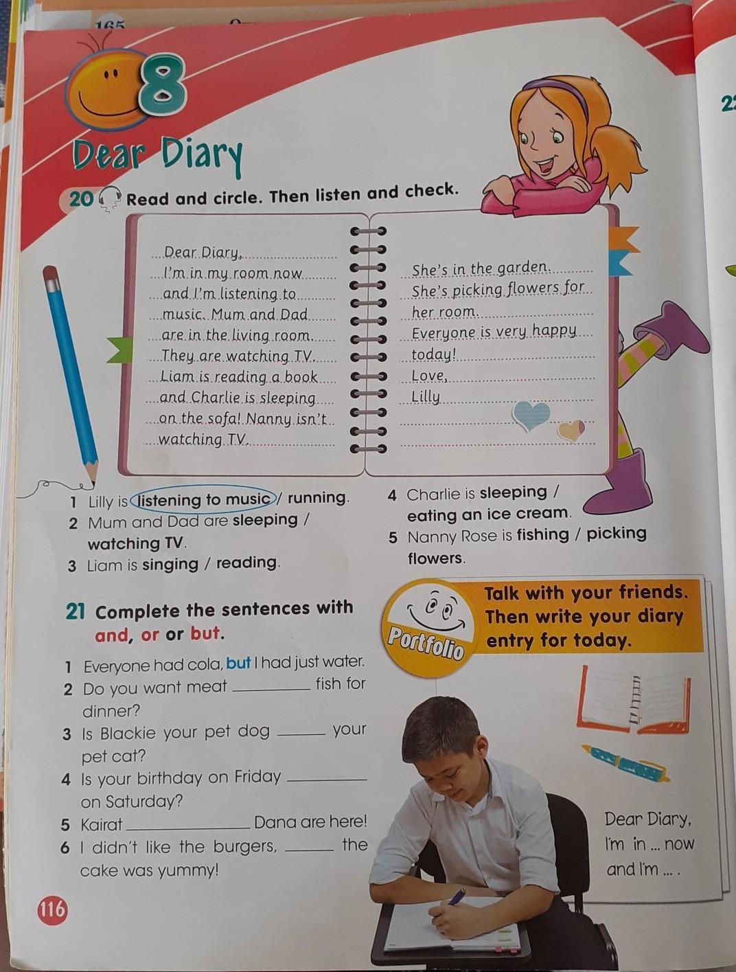 Помогите пожалуйста с упражнением номер 20.текст из дневника Лили и ответить на вопросы под ним.
