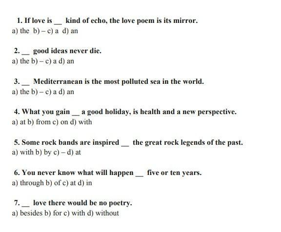 пожалуйста помогите с тестом 1)Some rock bands are inspired__ the great rock legends of the past