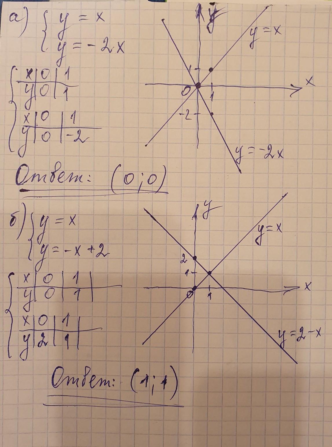 реши графическую систему уравнений а) y=x