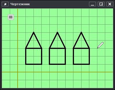 Как нарисовать 3 домика подряд в программе КуМир???????