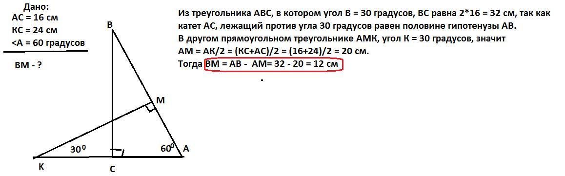 Ответ: ВМ = 12 см