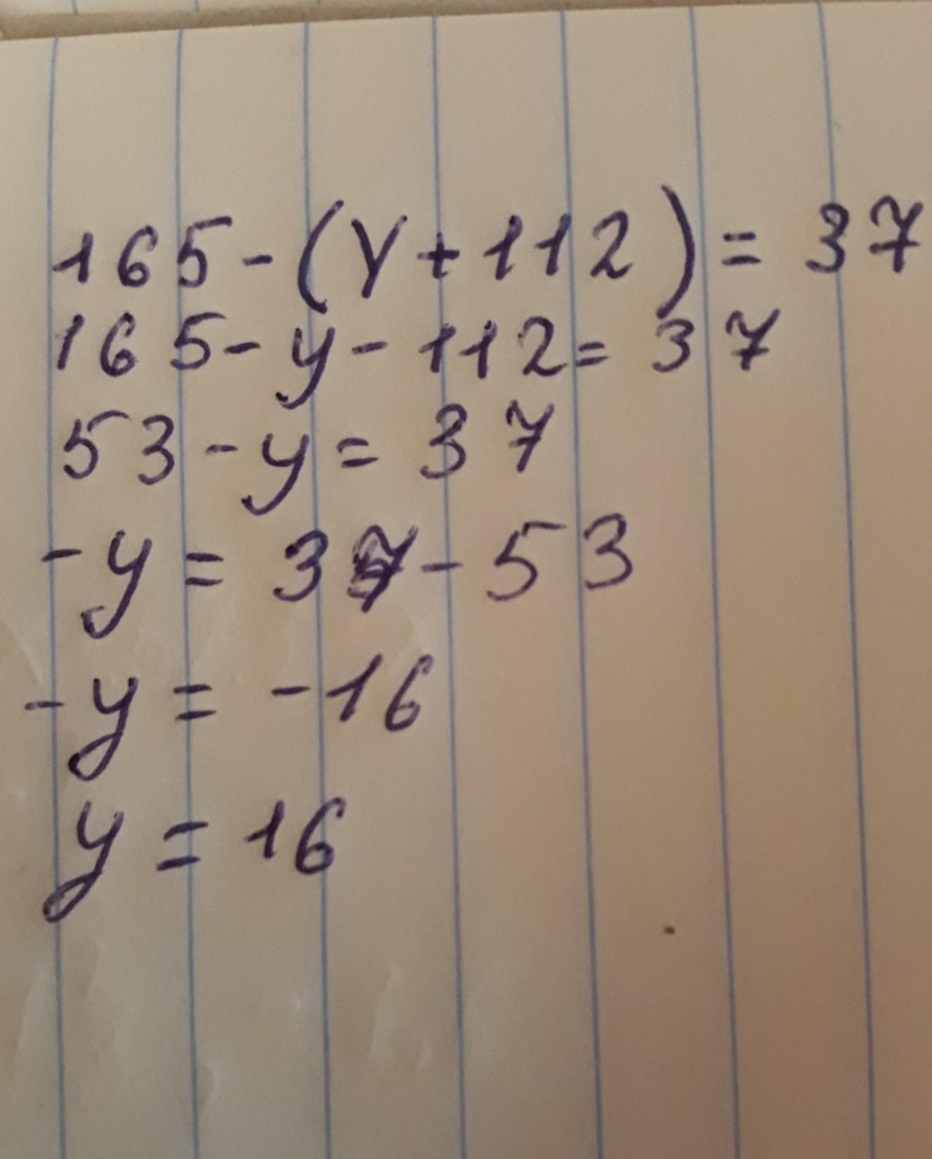 165 - (Y + 112) = 37