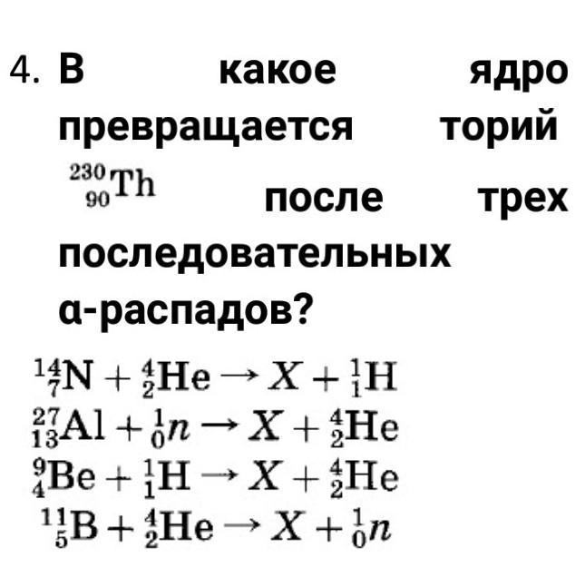 1) Чтобы понять в какое ядро превращается торий после трех последовательных альфа-распадов, нужно составить уравнение реакции.