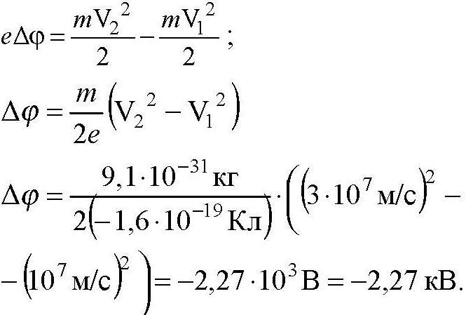 СРОЧНО!! Какую разность потенциалов должен пройти электрон, чтобы его скорость уменьшилась от 10 до 30 Мм/ с?