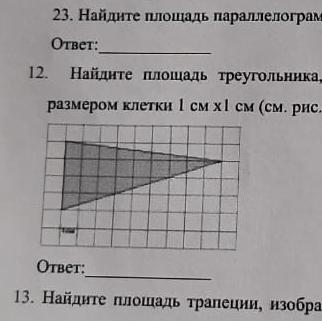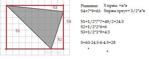 найдите площадь треугольника, изображенного на рисунке, с размером клетки 1х1