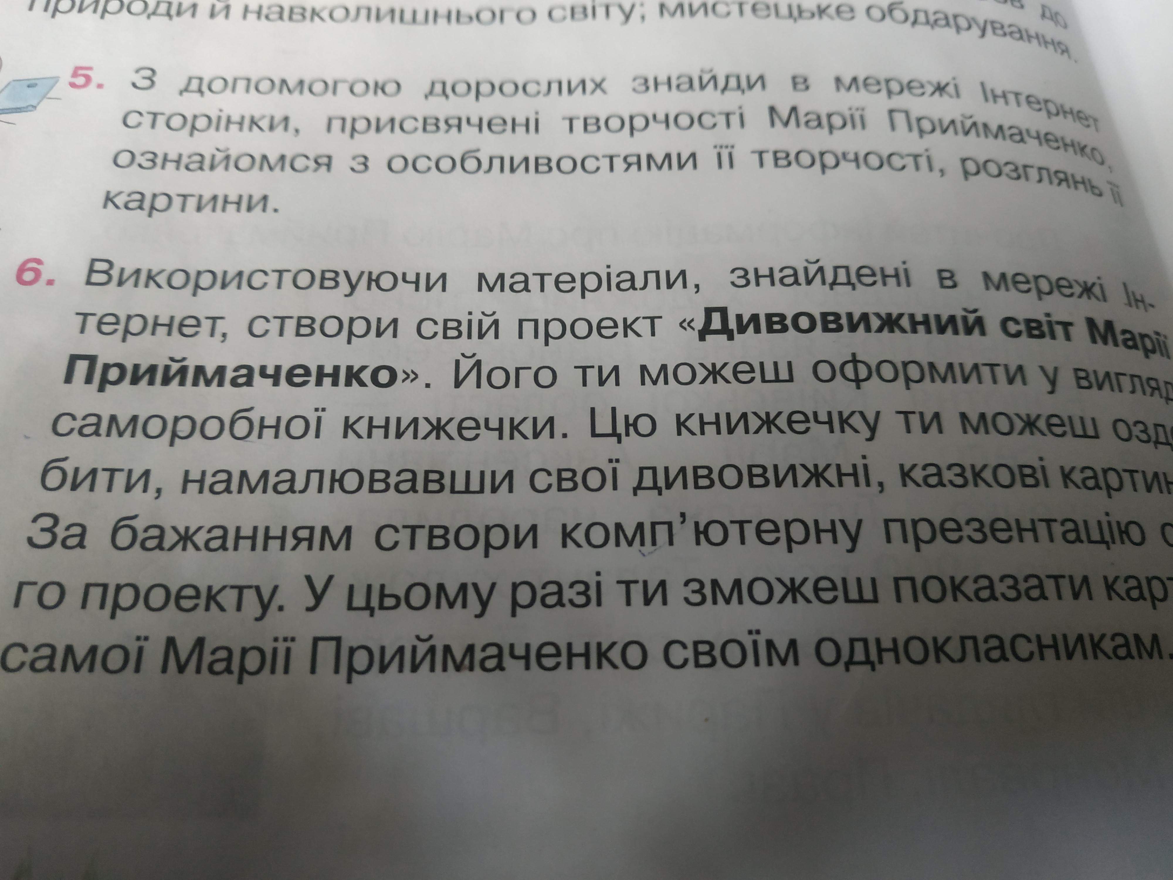 Допоможіть зробити проект по творчеству Марії примаченко
