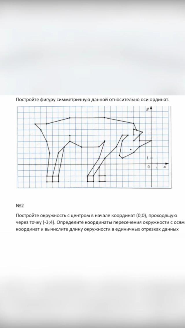 2. Строим окружность (круг) с центром 0;0 (0 по X и 0 по Y) и стороной -3;4 ( -3 по X и 4 по Y общая точка) ищем пересечения окружности с осями координат и длину (от центра к старане)