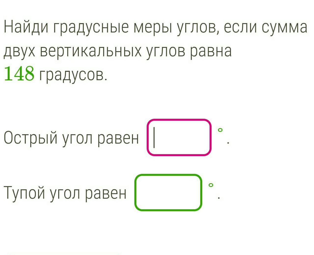 74 острый угол и 106 тупой.