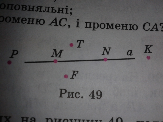 M,N-принадлежат прямой а. T,K,P,F - не принадлежат прямой а.Это же легко