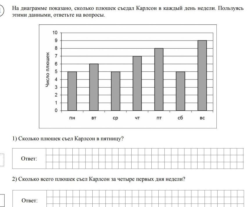 1) 8 плюшек Карлсон съел в пятницу.