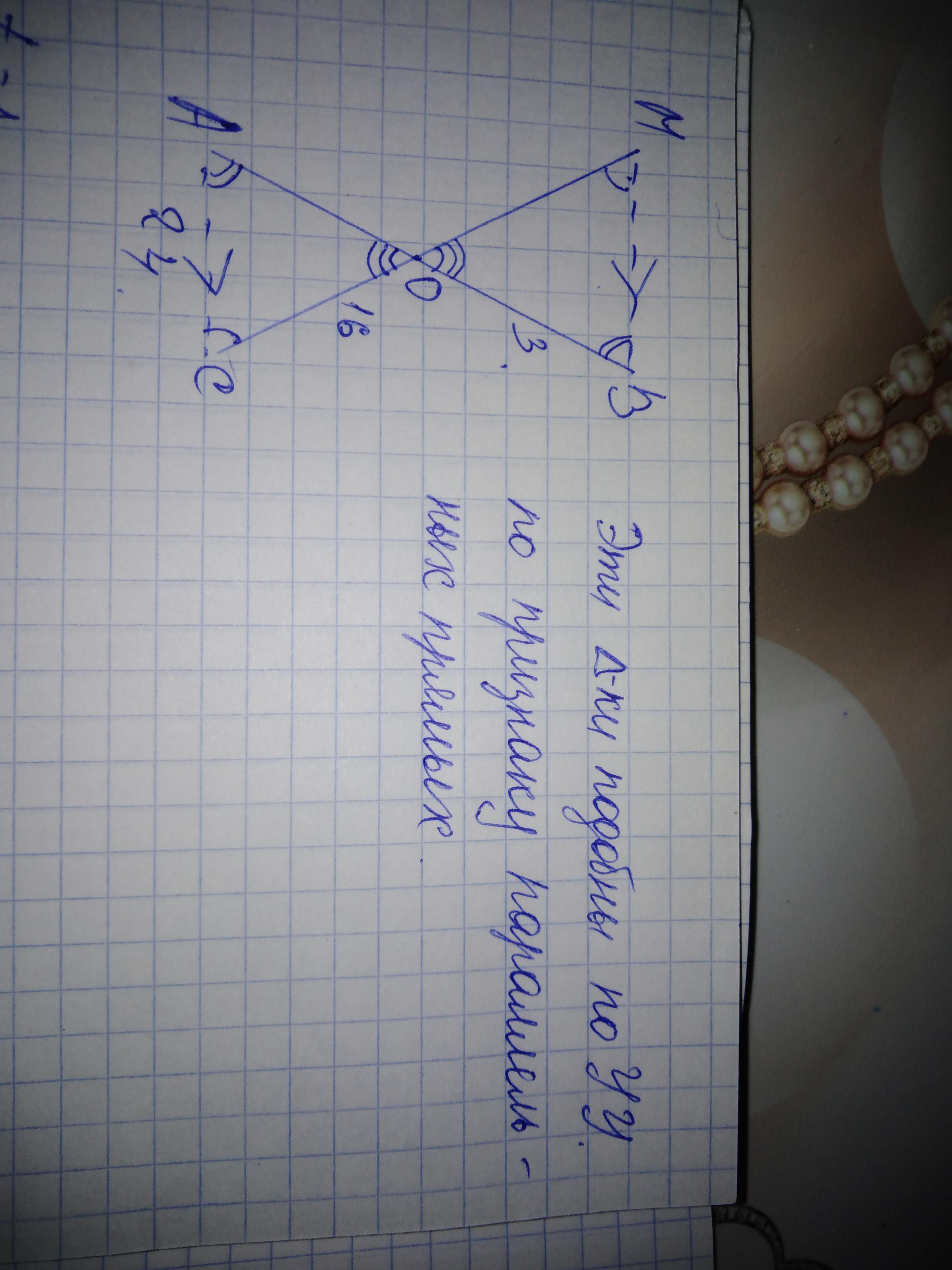 Отрезки АВ и СМ пересекаются в точке О так, что АС параллельна ВМ. Найдите длину отрезка ВМ, если АС=24 см, ОВ=3 см, СО=16 см.