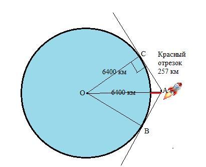 1)ΔОСА-прямоугольный , по свойству радиуса, проведенного в точку касания. Оа=6400+257=6657 (км).