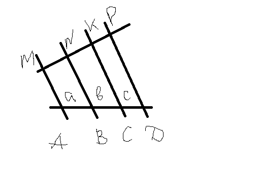 МN=2,5/0,68=3,67 NK=4/0,68=5.88 KP=2/0,68=2,94 (3,67+5,88+2,94=12,49 =12.5)