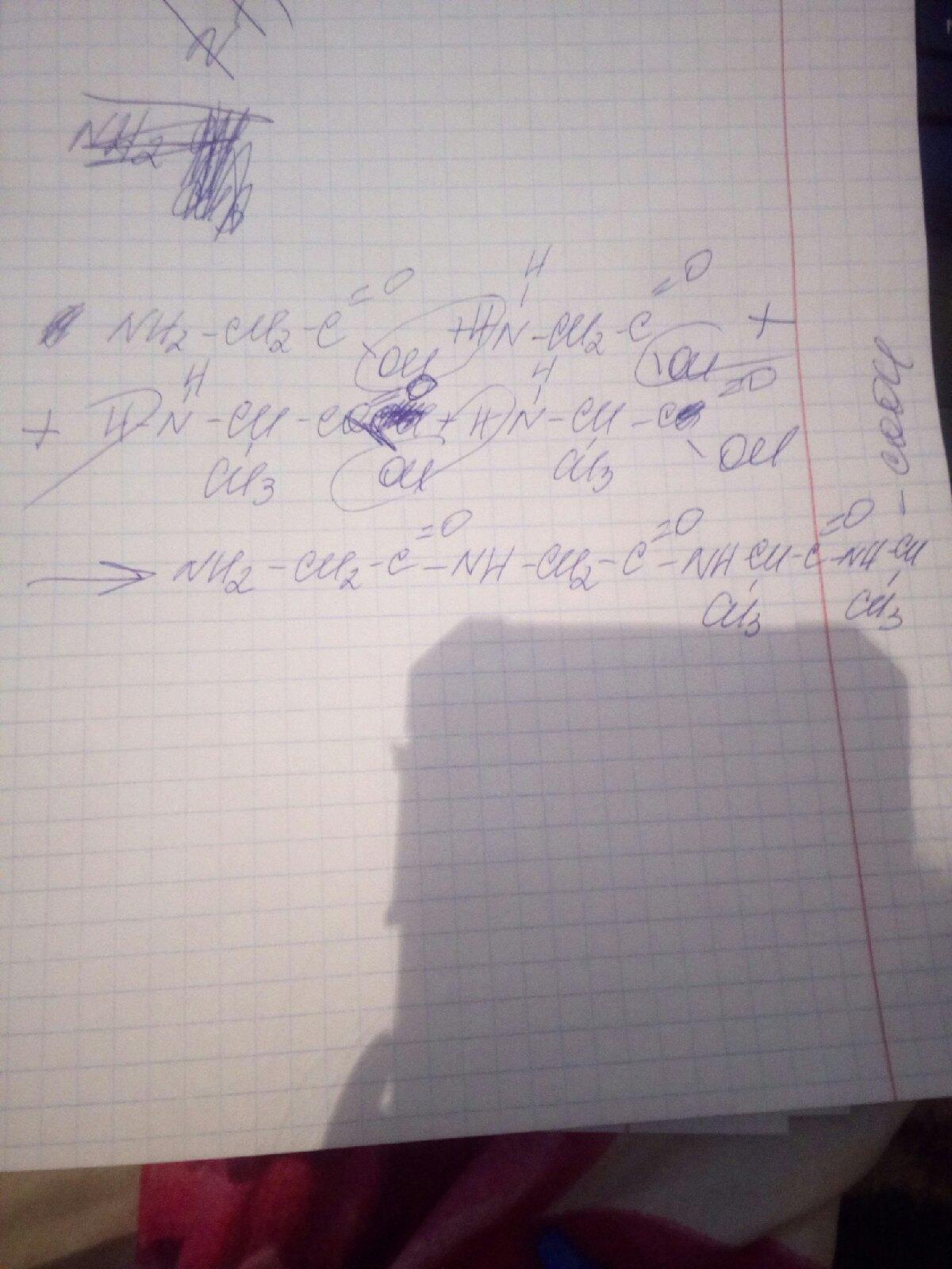 Напишите уравнение образования трипептида из двух молекул глицина и двух молекул аланина